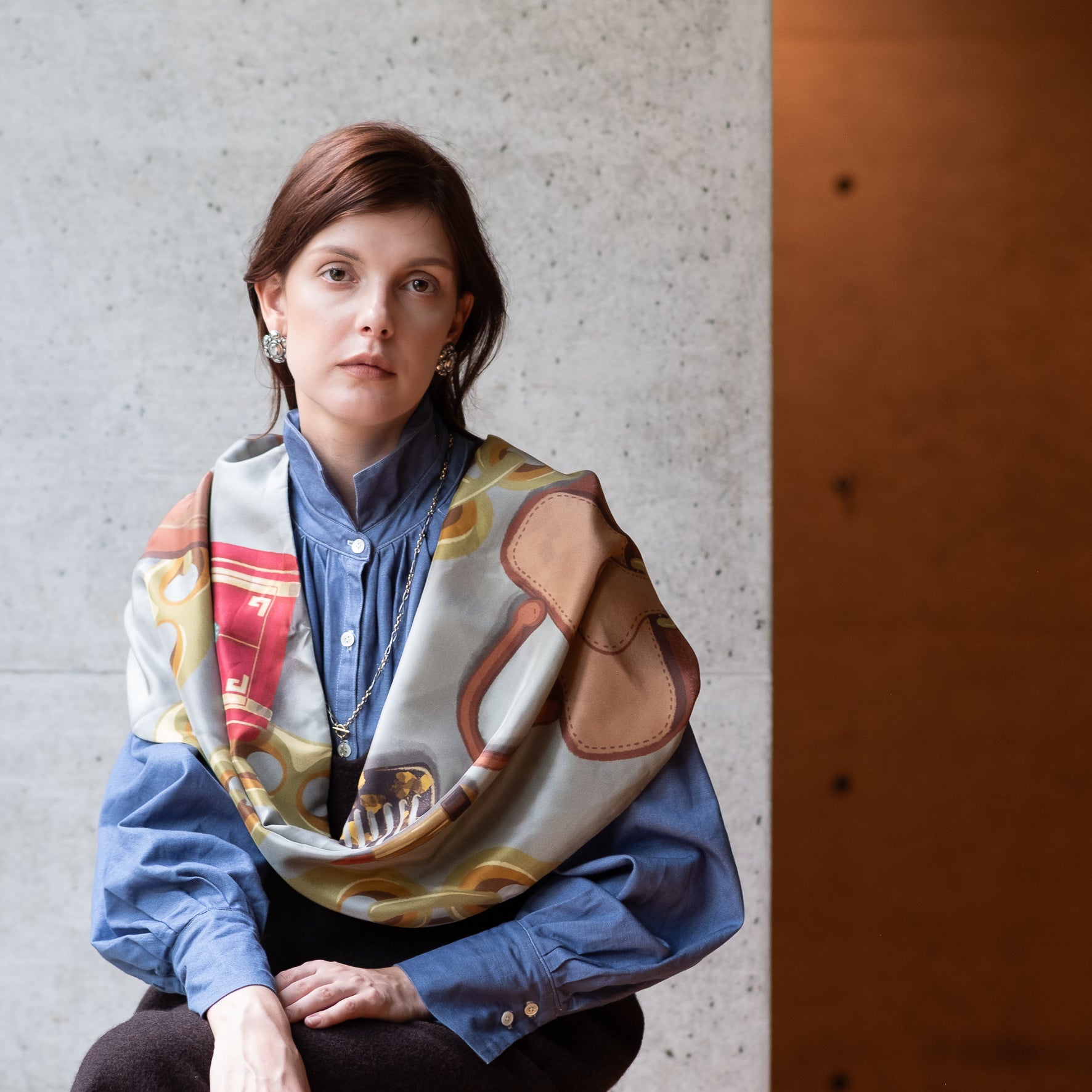 巻いた時の異素材のミックスが、大人の女性のスタイリングに遊びゴコロを加えてくれる、そんなループスカーフです。