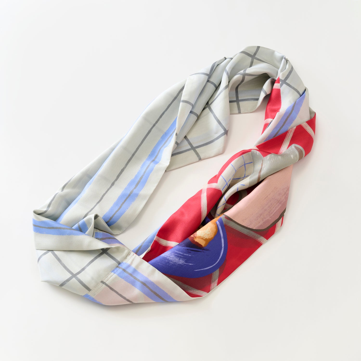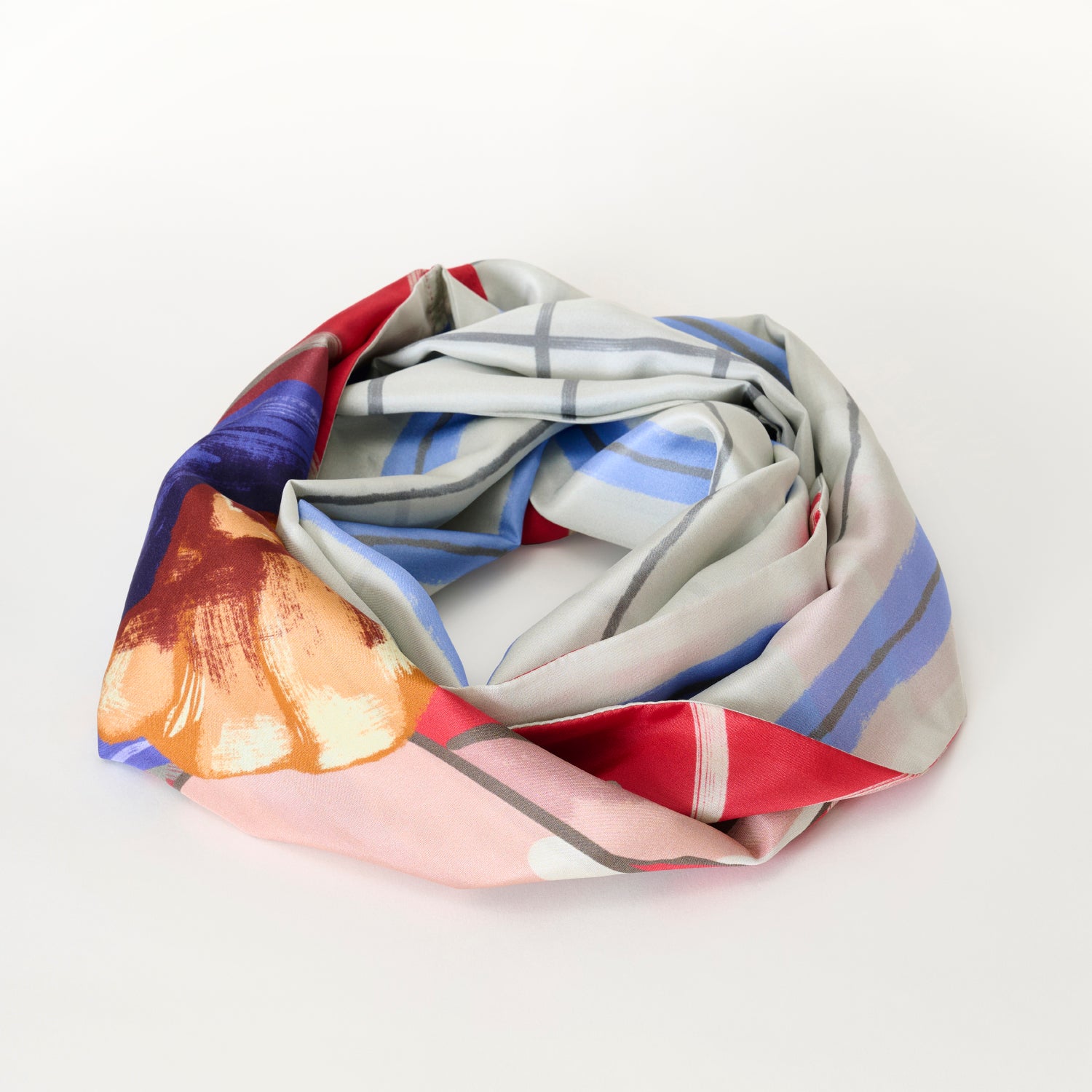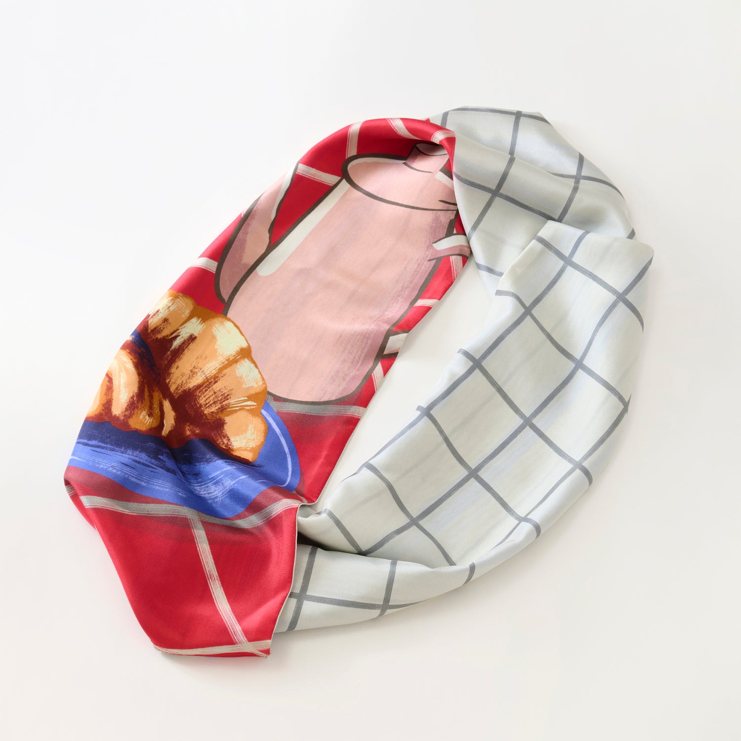 両面シルクのループスカーフ 'Coffee & Croissants' cream red